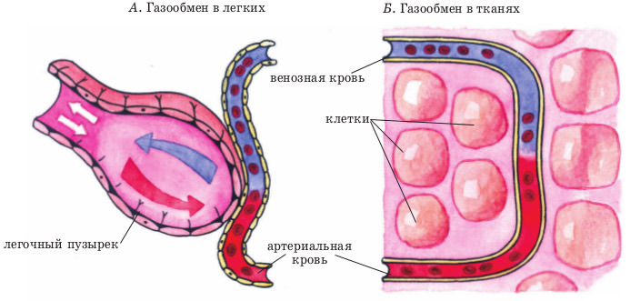 После того, как в ткани перешло большее количество кислорода, а из тканей была удалена вся углекислота, кровь становится венозной. Весь газообмен осуществляется с каждым новым притоком крови, и за тот промежуток времени, пока она движется по капилляру в сторону венулы – сосудика, собирающего венозную кровь. То есть с каждым сердечным циклом в том или ином участке организма осуществляется поступление кислорода в ткани и удаление из них двуокиси углерода.