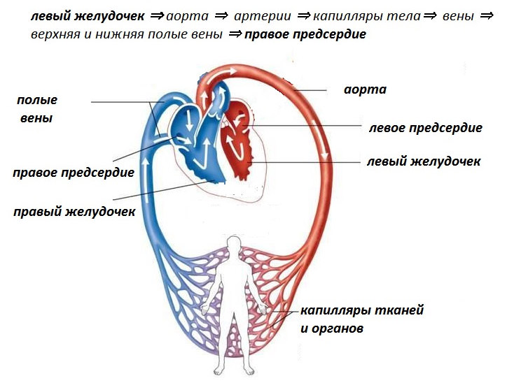 Кровь в организме человека движется по замкнутой системе, в которой выделяют две части — большой круг кровообращения и малый круг кровообращения.