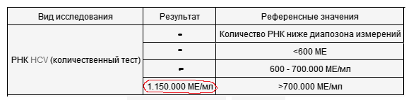 То есть он показывает концентрацию или нагрузку РНК гепатита С в организме человека в единицах на миллилитр или 1 кубический сантиметр крови.